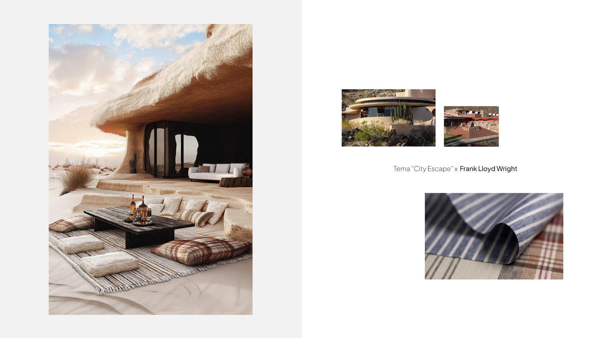 While in “Beyond Reality” the collection lines were associated with the surrealist works of Mautits Cornelis Escher, Renè Magritte e Giorgio de Chirico, in “Beyond Living” the brand chose to draw inspiration from the aesthetics of great architectural masters such as Le Corbusier, Frank Lloyd Wright and Walter Gropius. The goal was to link fashion, design, innovation, and craftsmanship, creating unique, evocative, and meaningful campaign images for the brand. The images were then animated and used both in showroom settings and digital contexts to communicate and present the new collections to buyers, companies, and collaborators.