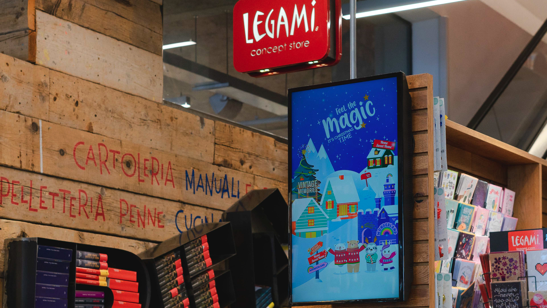 We are Legami’s partner for the production of motion graphic videos: for each project, the starting point is the concept phase and the creation of key visuals, moving on to the development of storyboards, and then animating graphics and character animation. Then, we adapt each video into different formats for multiple media: social networks, web communication, and in-store totems.