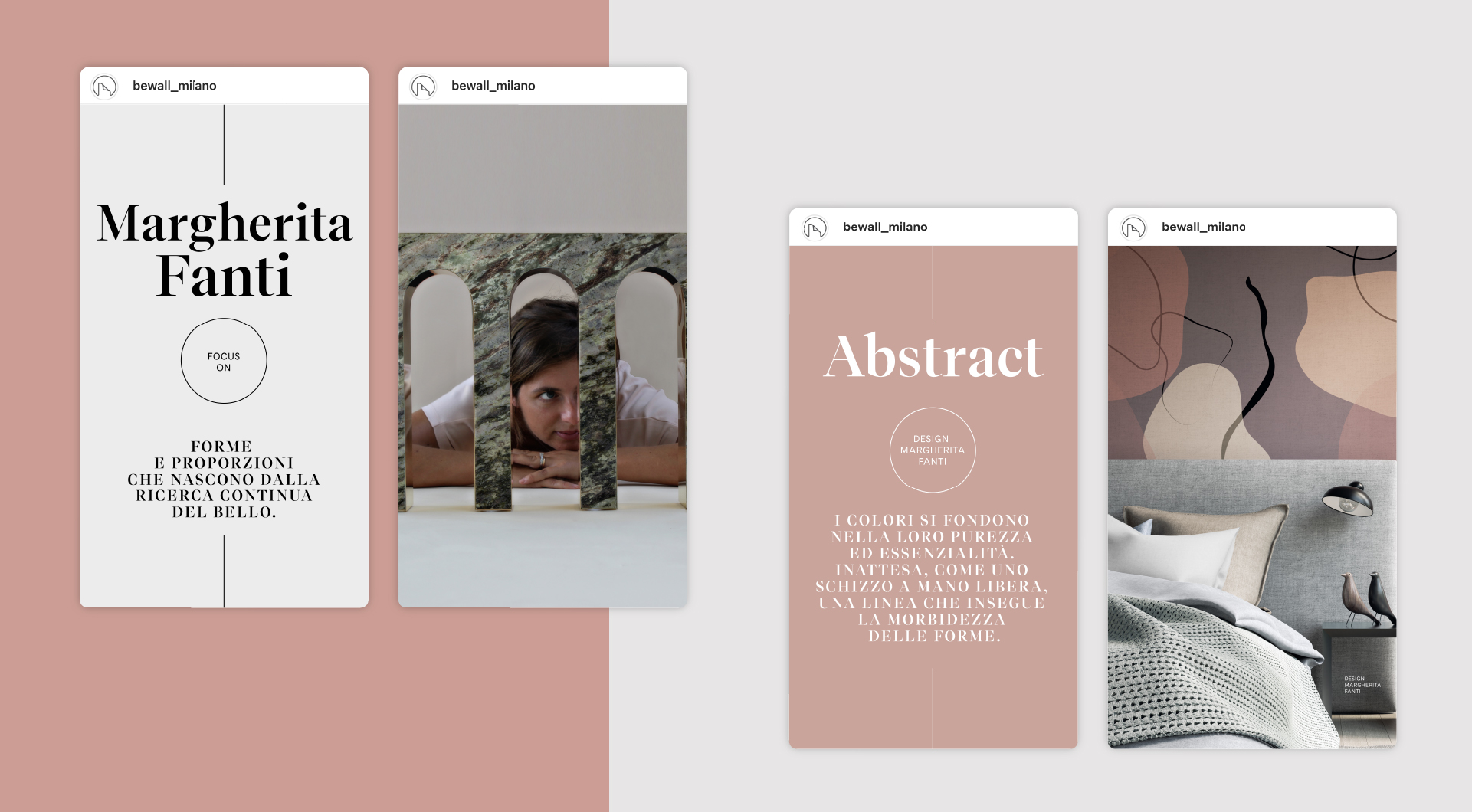 beWall è un brand di carte da parati Made in Italy, che mette la ricerca – tanto dei materiali quanto del design – al centro della sua produzione, concependo le pareti come un luogo di sperimentazione, libertà e interpretazione. I valori beWall contemplano innovazione tecnologica, eleganza estetica e sostenibilità, con l’obiettivo di portare la bellezza nella vita di tutti i giorni.