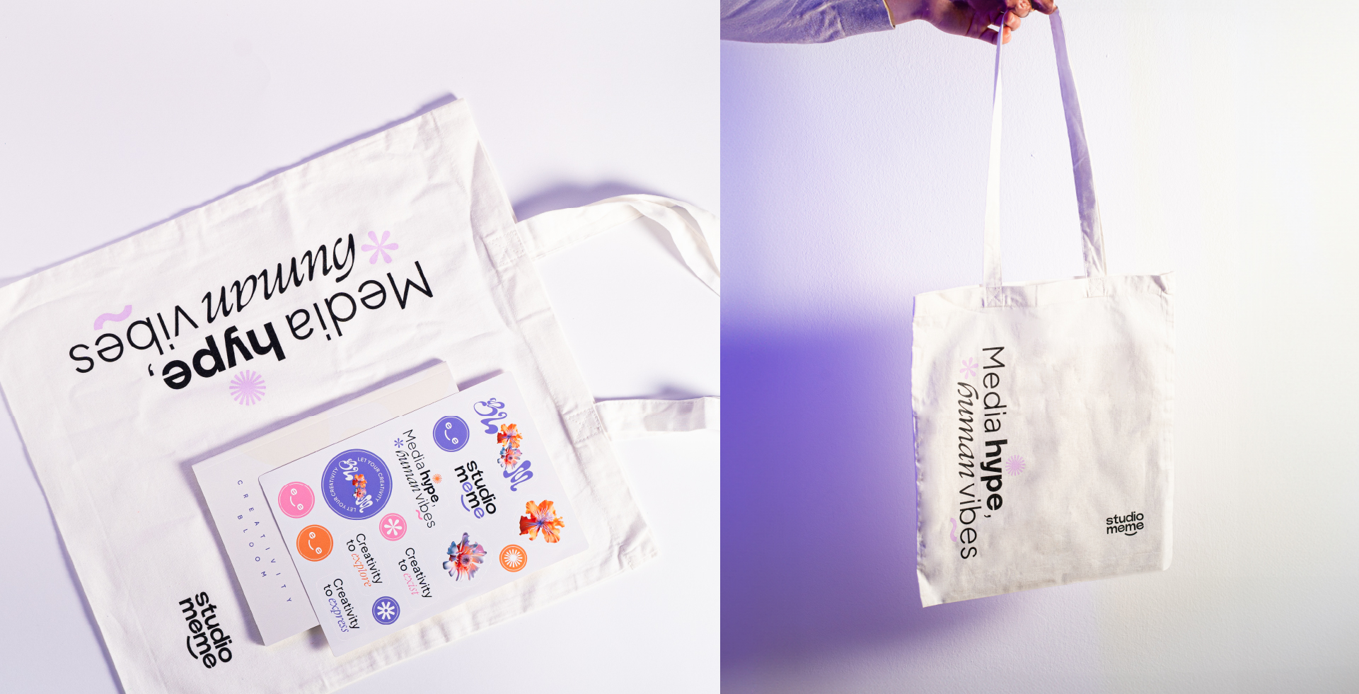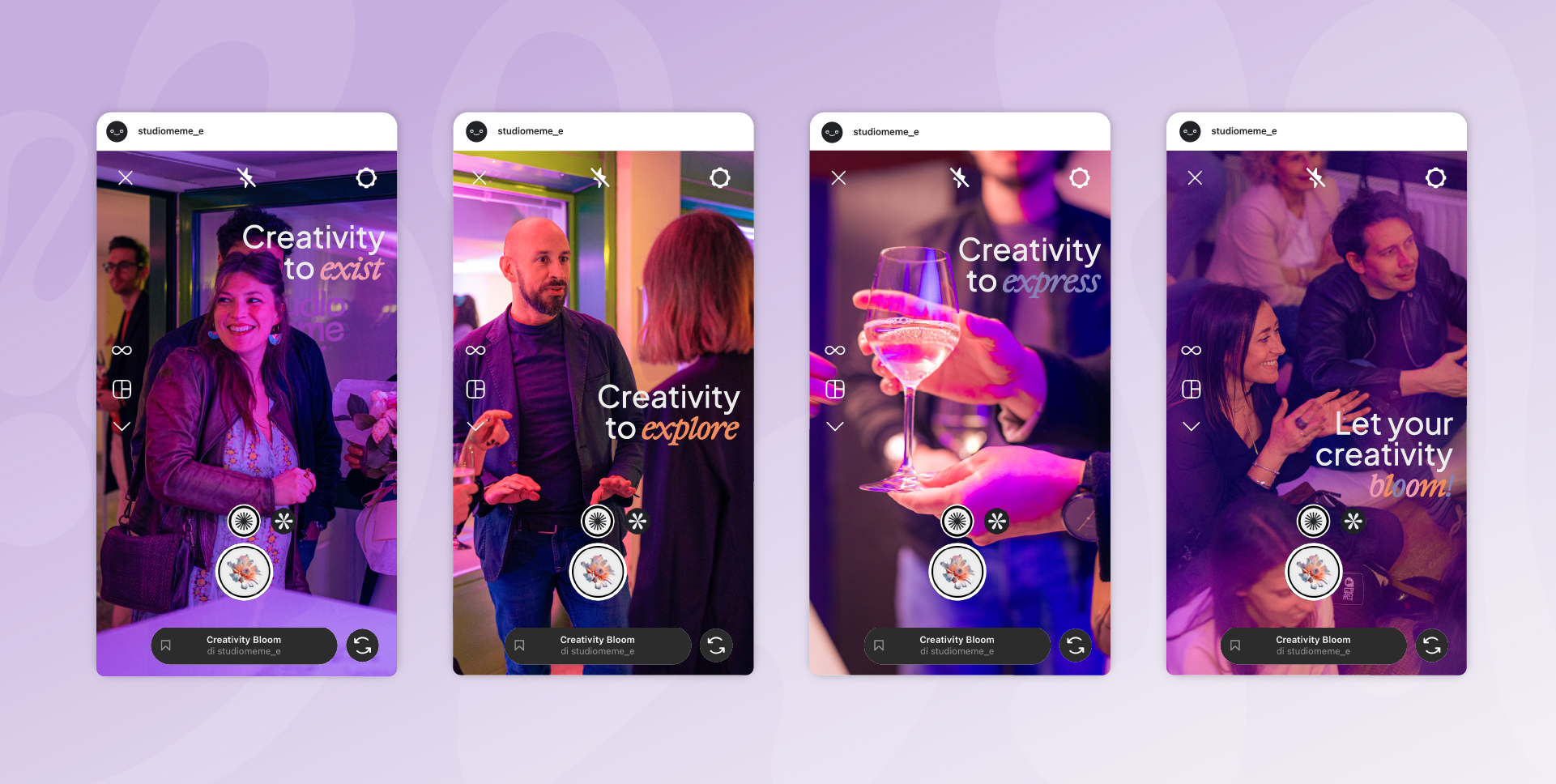 L’intelligenza artificiale è stata utilizzata per definire ogni materiale: i visual di allestimento, la pubblicazione dedicata al tema creativity bloom, gli inviti, il filtro in realtà aumentata e i gadget. Mentre tutto rimanda al tema, alla base del party resta il cuore dell’attività comunicativa e della vision dello studio: le human vibes, l’atmosfera profondamente partecipata creata per e con le persone. Come cita il payoff di Studiomeme: media hype, human vibes.