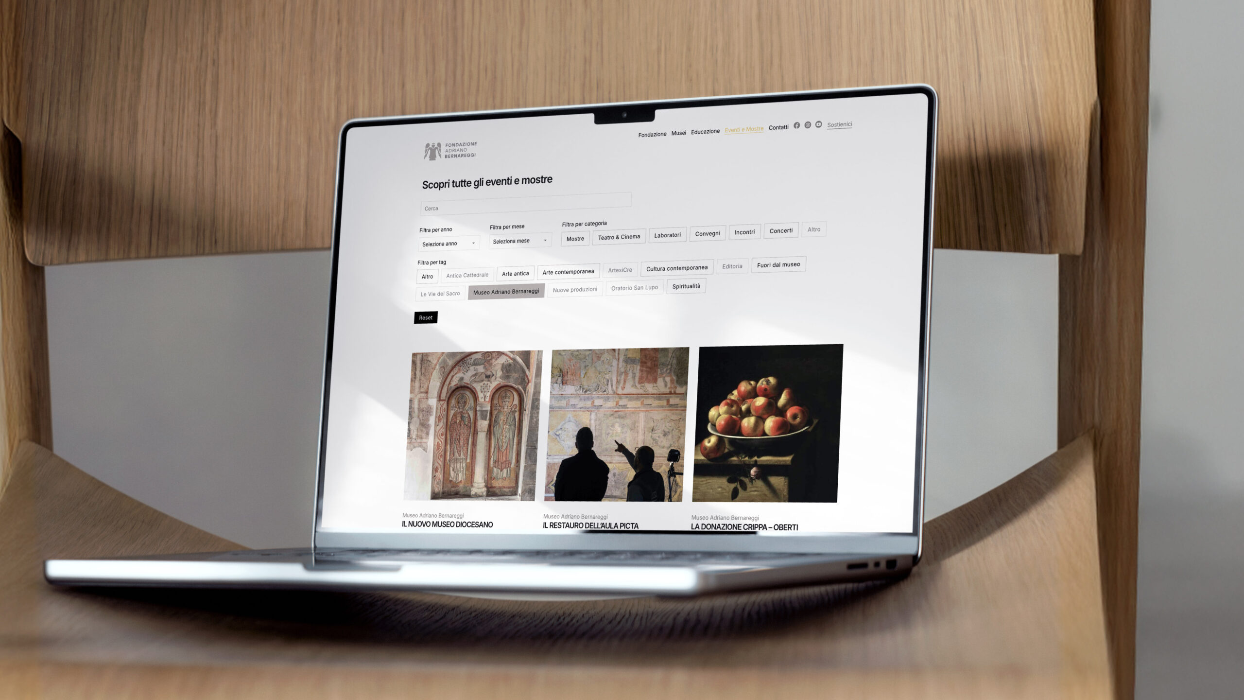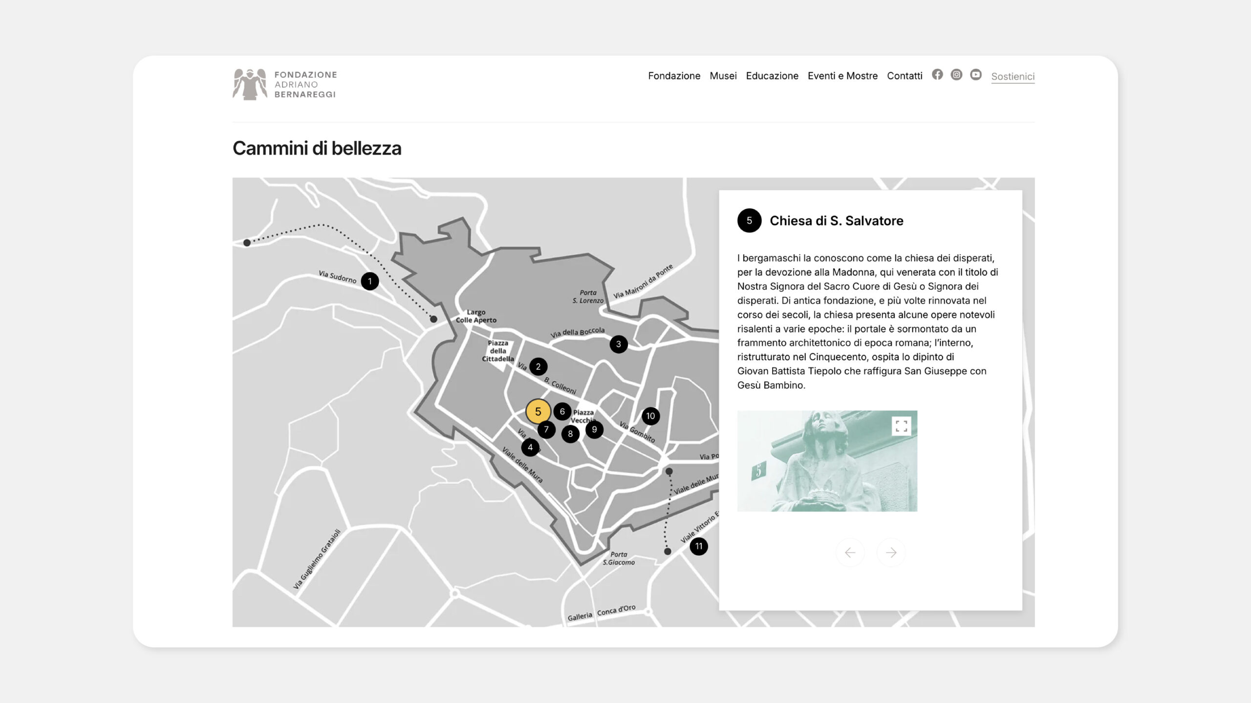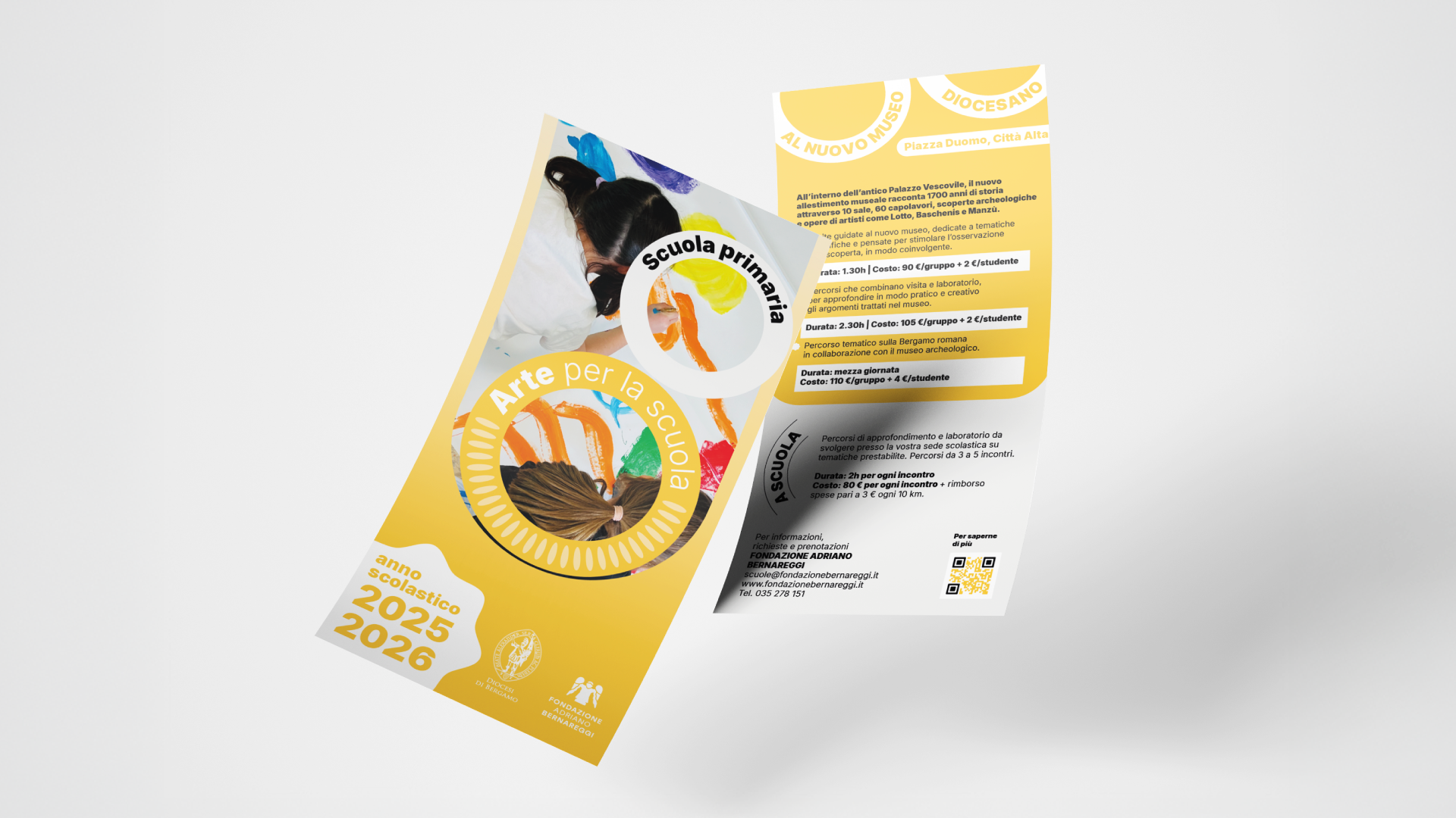 La Fondazione Adriano Bernareggi è un punto di riferimento per l’arte sacra e contemporanea a Bergamo, custode di un patrimonio che unisce tradizione e ricerca. La collaborazione con la Fondazione nasce nel 2024 con un contributo pro-bono per il refresh grafico della comunicazione del progetto Le Vie del Sacro, adottato nell’ambito di Italia Patria della Bellezza. Da lì è nata la richiesta di accompagnare la Fondazione in un percorso più ampio di rebranding e nella riprogettazione del sito web.