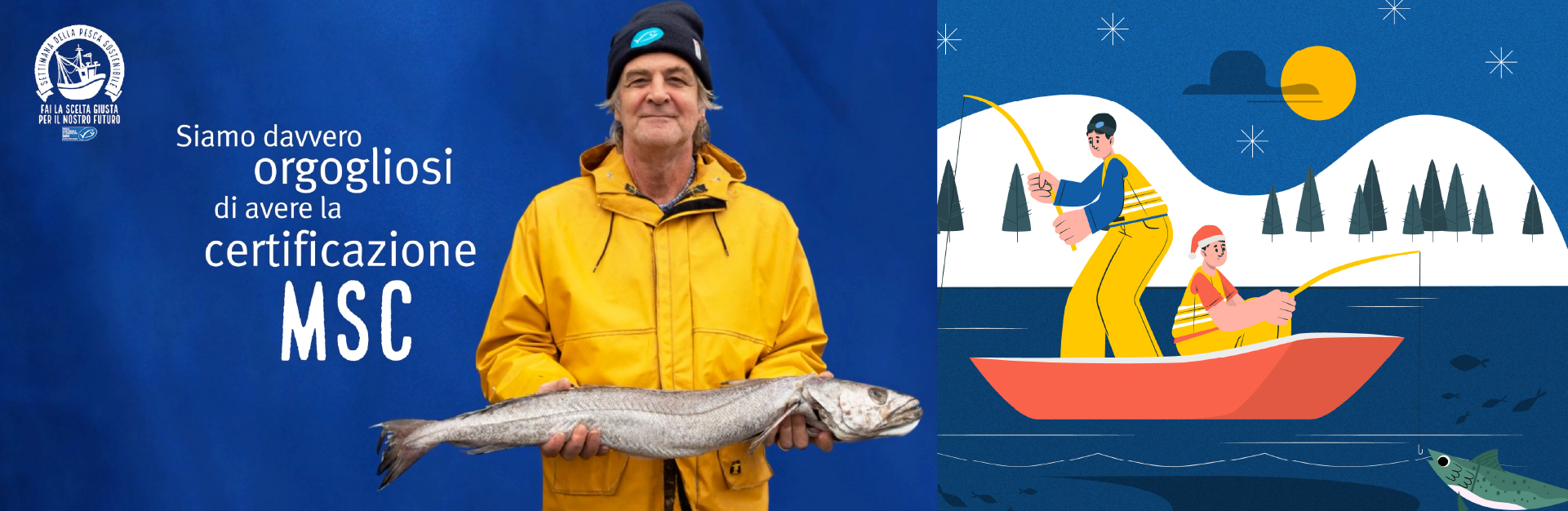 Per affrontare il tema complesso e sfaccettato della sostenibilità ittica abbiamo ideato un’iconografia immediata. Per l’annuale campagna natalizia, considerati il tema e il target, abbiamo optato per una creatività e un tono di voce tipicamente natalizi generalisti, simpatici, ottimisti e rassicuranti, in grado di avvicinare i consumatori al tema, invitandoli a fare la propria parte, acquistando fonti ittiche sostenibili.