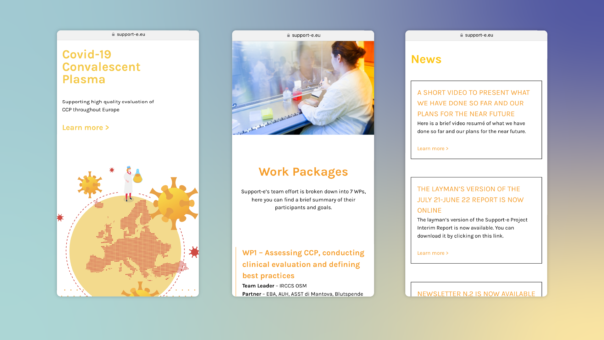 Il Centro nazionale Sangue, insieme con la Fondazione IRCCS Policlinico San Matteo di Pavia e l’Azienda Socio Sanitaria Territoriale (ASST) di Mantova, ci ha affidato la realizzazione di strumenti di comunicazione atti a facilitare gli scambi internazionali, favorire la cooperazione e la condivisione del progetto europeo SUPPORT – E (SUPPORTing high – quality evaluation of COVID-19 convalescent plasma throughout Europe).
