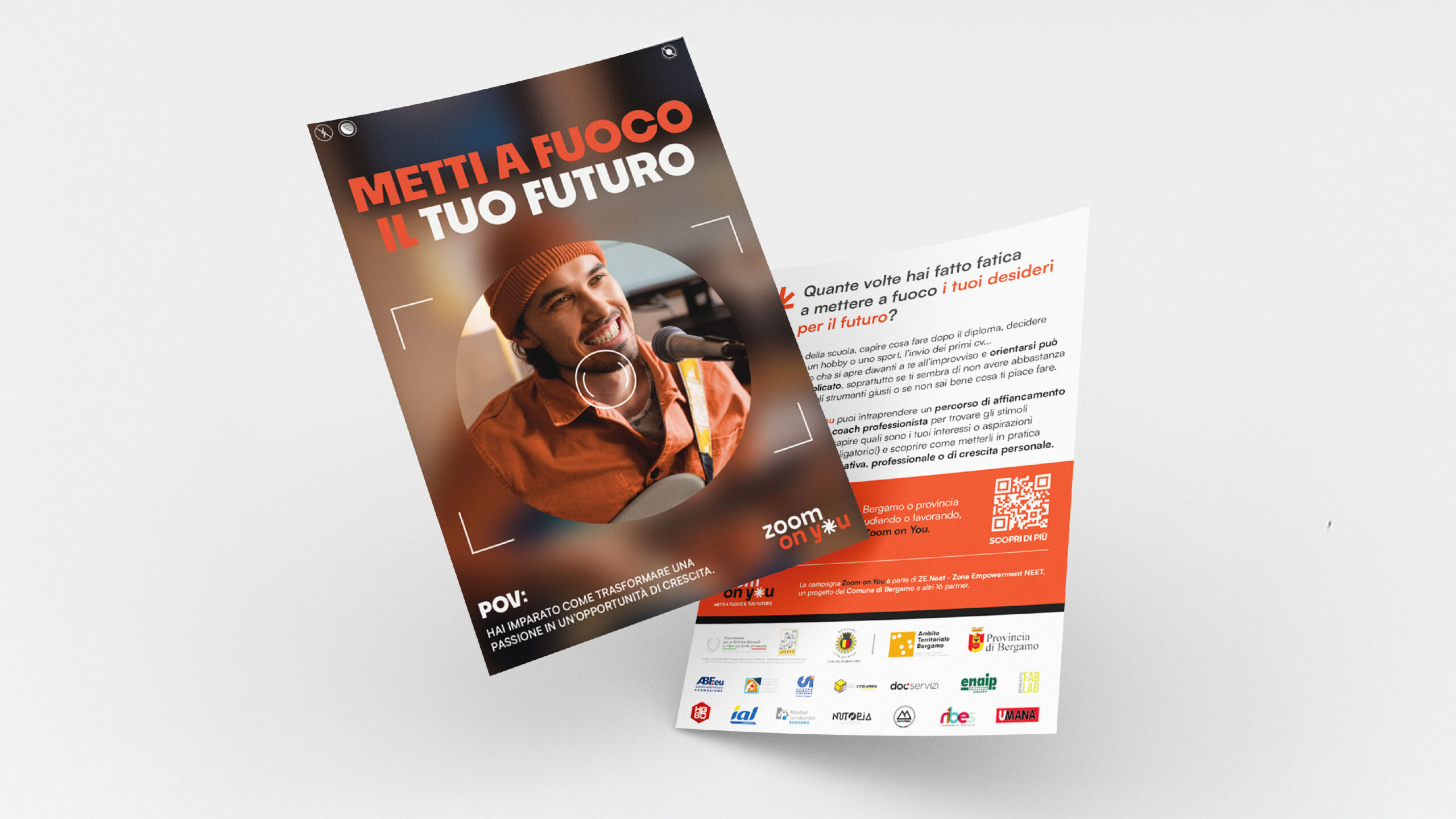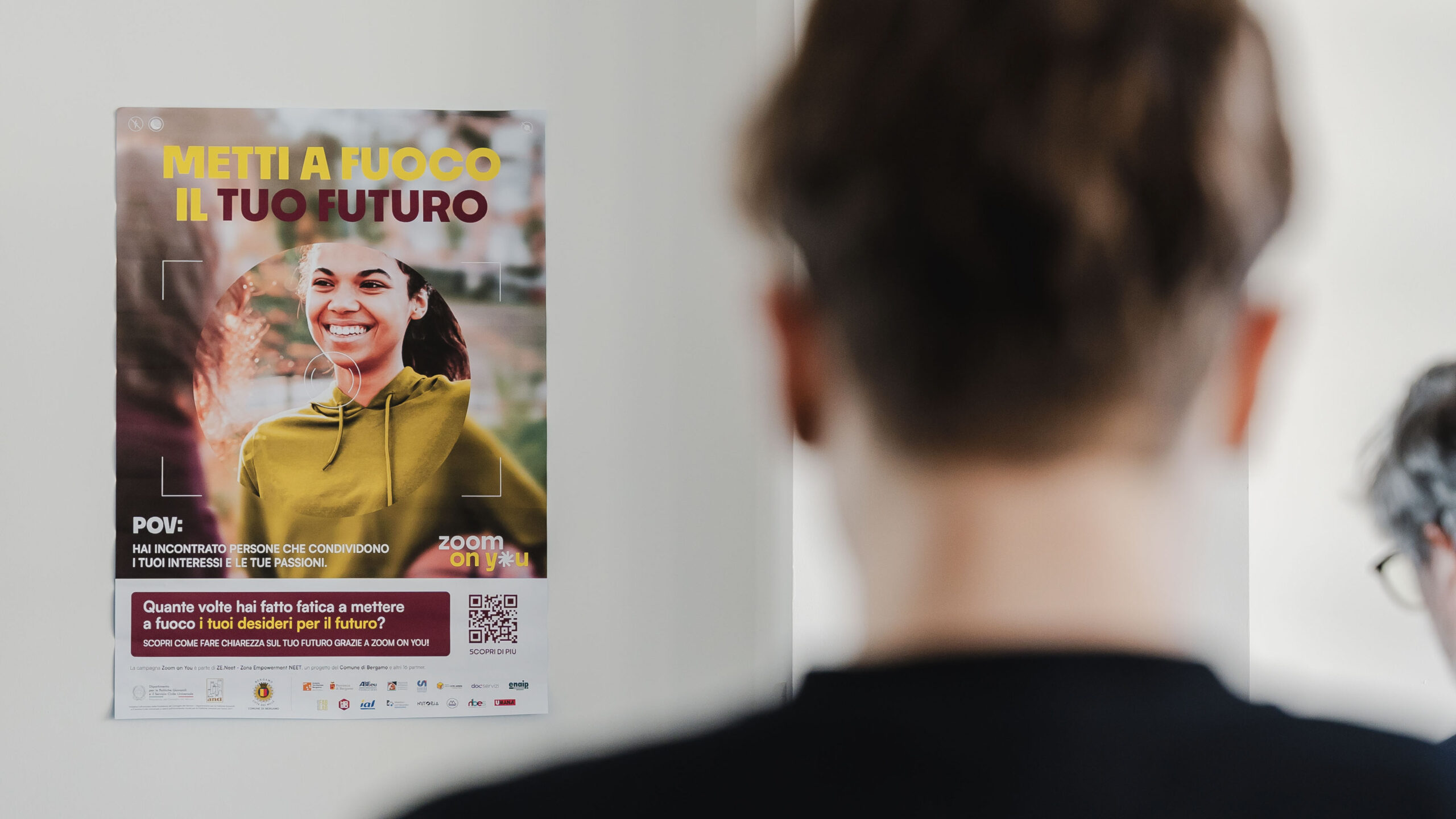 “Zoom on You” è la campagna di comunicazione ideata per promuovere il progetto Z.E.NeeT – Zona Empowerment NEET, un’iniziativa del Comune di Bergamo gestita operativamente da Hg80 Impresa Sociale. Il progetto si rivolge ai giovani NEET (Not in Education, Employment or Training), con l’obiettivo di offrire percorsi di attivazione personalizzati per uscire dalla condizione di inattività e scoprire nuove opportunità di crescita, studio, lavoro, socializzazione o volontariato.