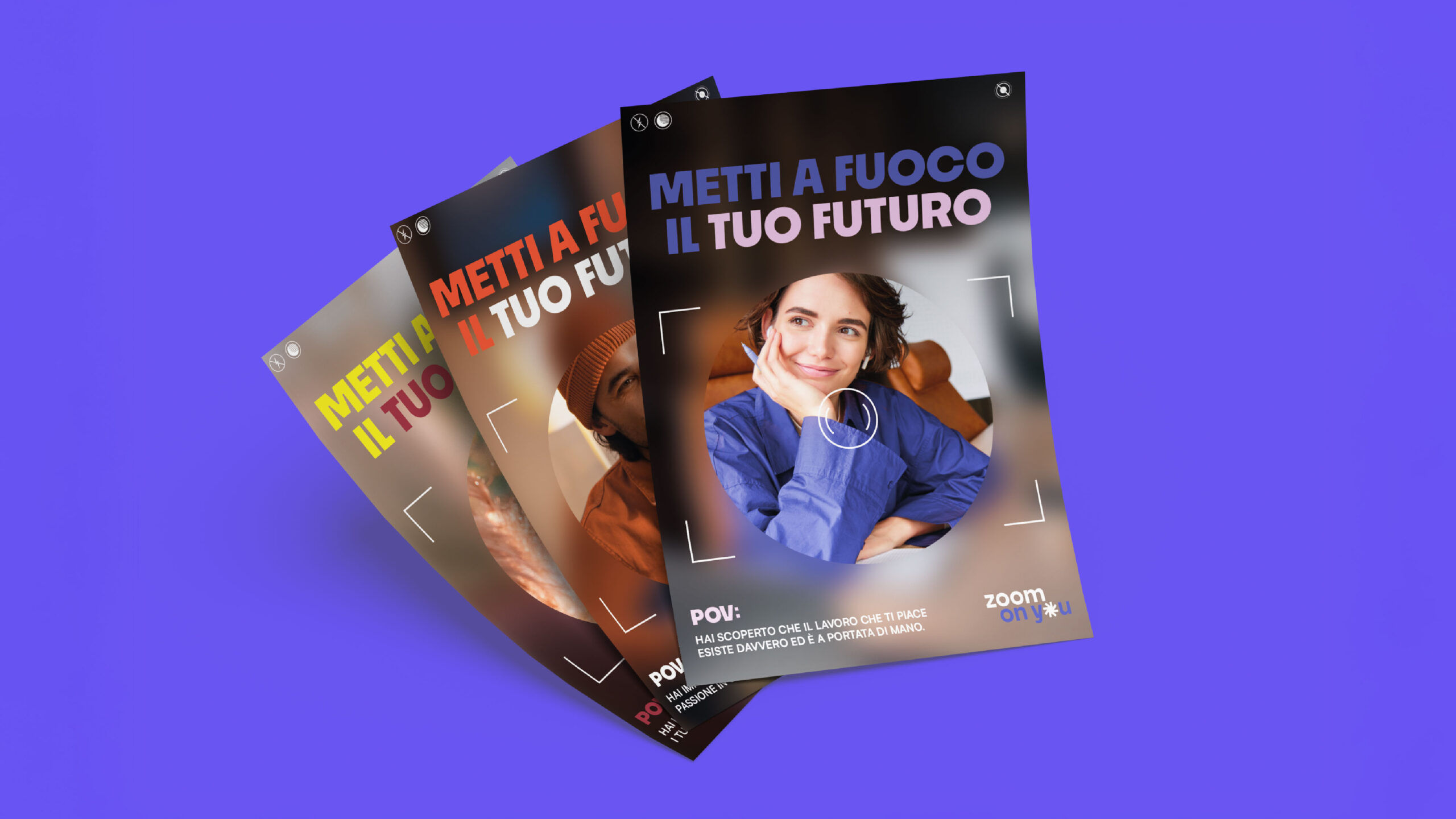 Il naming “Zoom on You – Metti a fuoco il tuo futuro” invita i giovani a concentrarsi su se stessi e su un futuro che oggi può sembrare sfocato. il visual e lo storytelling si allineano alle abitudini del target sfruttando il trend del POV (Point of View), molto diffuso su TikTok: una modalità narrativa immersiva ed empatica, in prima persona, che permette allo spettatore di identificarsi immediatamente nello scenario della campagna.